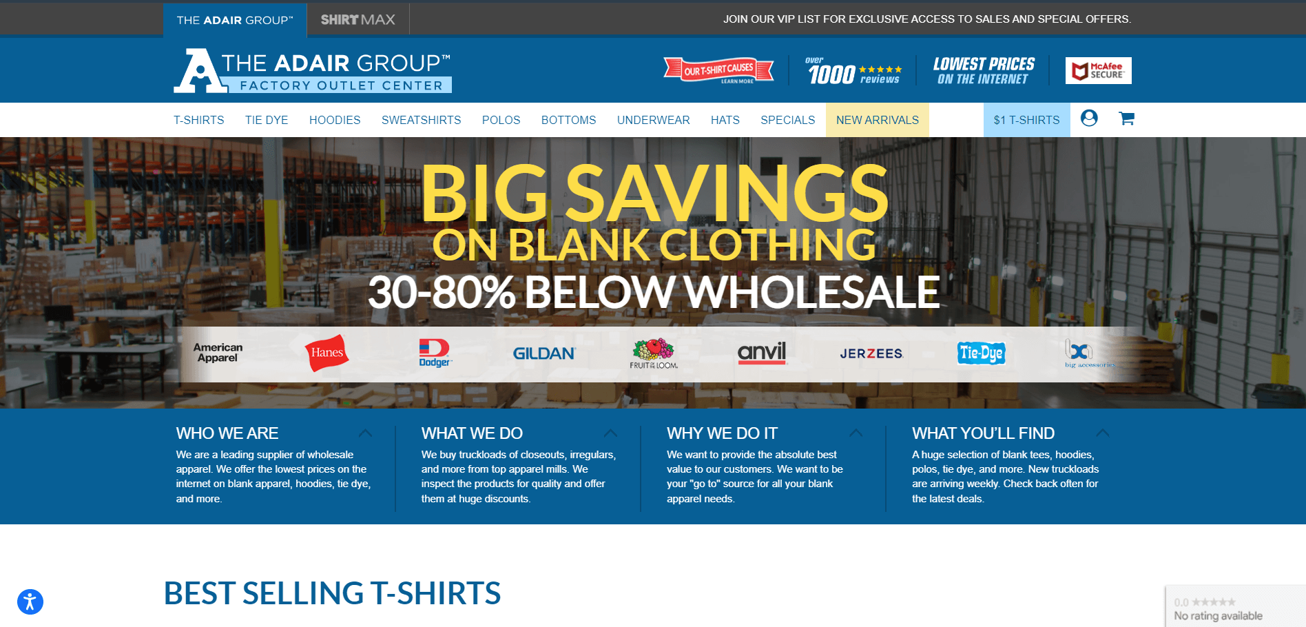 Over 50 years old, the Adair Group has been one of the leading wholesale t-shirt bulk supplier companies. With white tees starting at only $1.7 and polos starting at only $1.50; this company never fails to engage customers. If you are looking for affordable, stylish, and diverse shirts for you, your business, school, or event, this company offers a wide range of options for all.