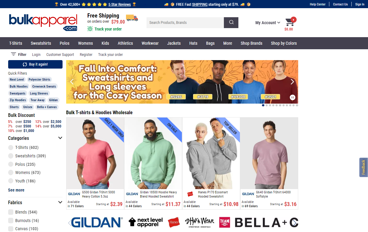 Bulk Apparel offers high-quality blank wholesale apparel. It offers no hassle, free returns, and a ton of attractive bulk discounts on apparel for both men and women.