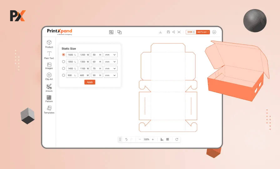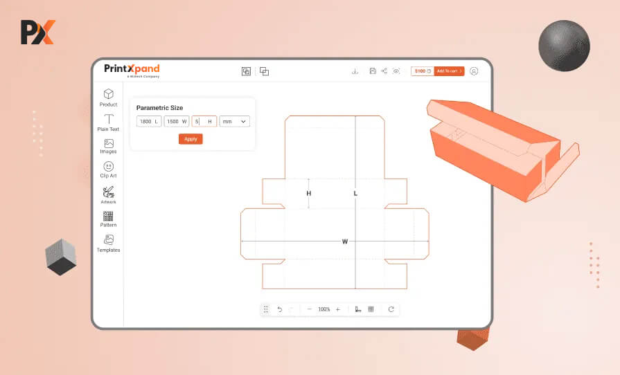 The advantage of 3D preview is that customer can actually see how their box will look. As they will be entering custom sizes, it might be difficult for them to visualize the final outcome. But with the 3D preview, it becomes crystal clear. Moreover, the 2D dielines also indicate the restricted parts which cannot be designed, for better understanding.