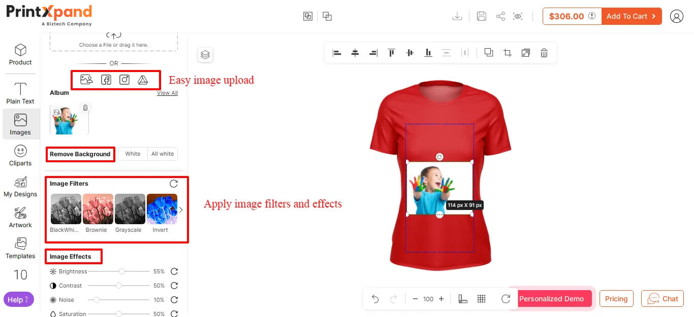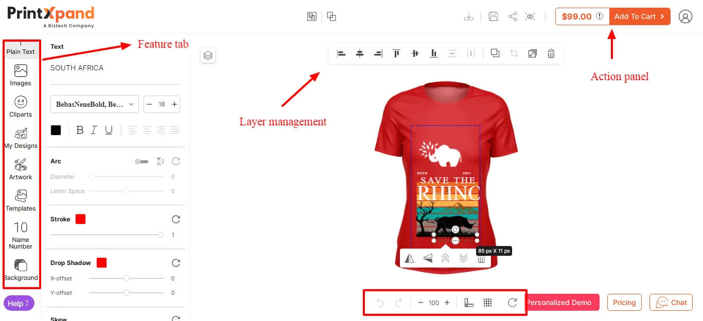 Leverage the power of the WooCommerce T-shirt Design Tool that aims to make the customization process easy. Request a demo get a personalized tour.