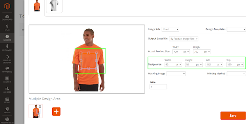 You can also manage printing cost, color, and print design area. This option will enable end-users to choose from different color and printing options when designing.