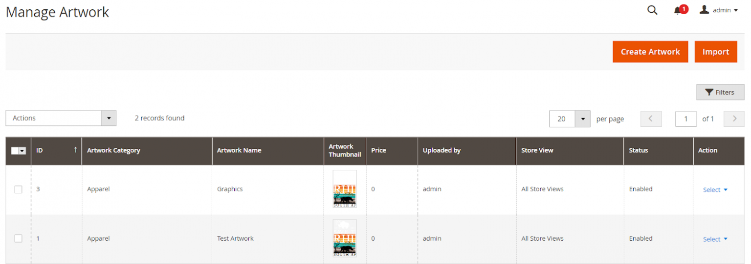 Once you choose the manage artwork option from the backend, you can configure things like the name of the artwork, price, artwork category, etc. After you save all the configurations, users can use the feature.