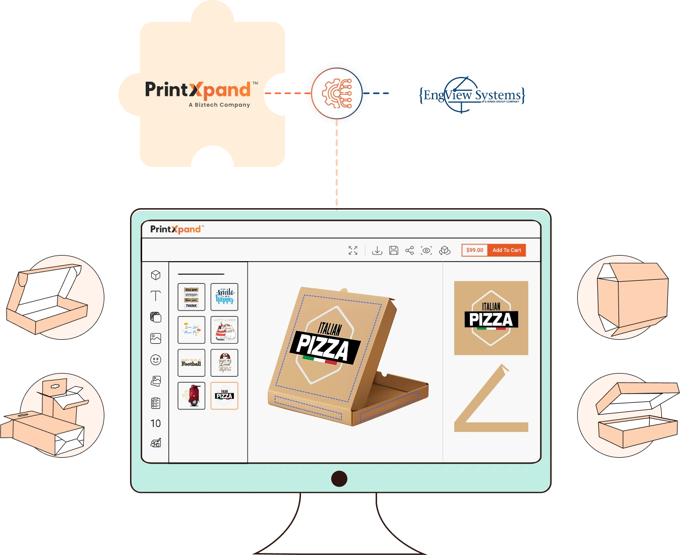 Let your customers leverage the advanced web-to-pack solution and create custom packages in clicks. The solution is designed to make your end-to-end business operations a breeze as it integrates innovative features to streamline the process!
