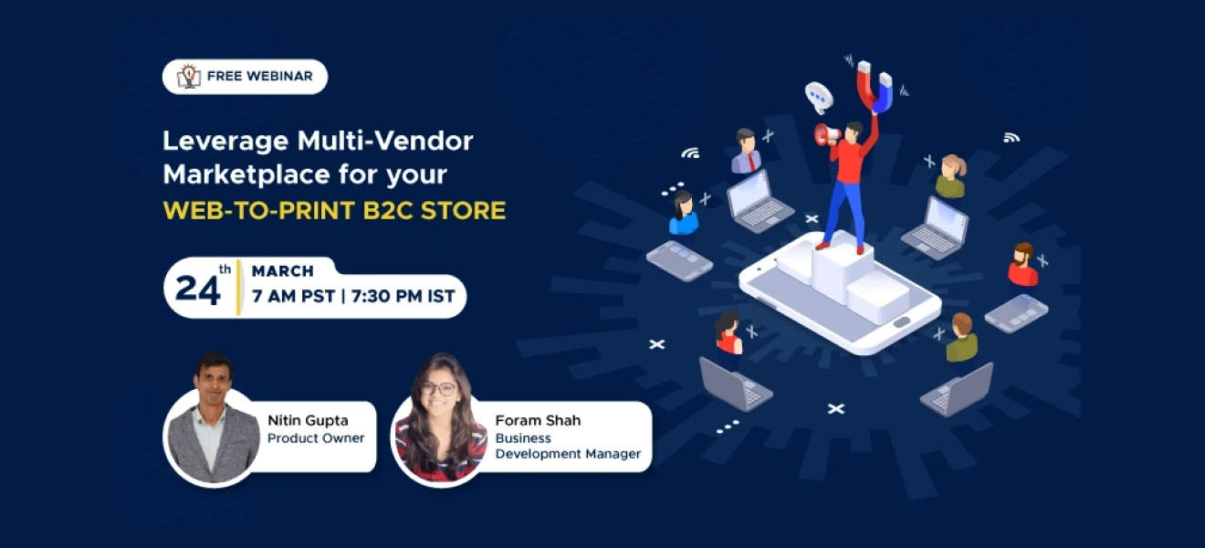 We discussed how to make your business reach globally, increase sales, and expand in this webinar conducted on 24 March 2021. Watch the webinar where our experts guide you through a multi-vendor marketplace and how it can help your web-to-print B2C store expand your reach.