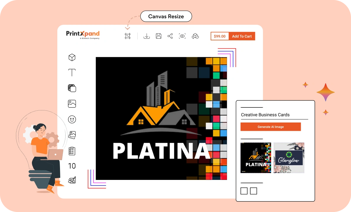 Our web-to-print solutions uses a resolution warning feature to ensure that designed or uploaded files are suitable for large-format printing. It alerts users if the resolution is too low, helping to maintain high print quality.